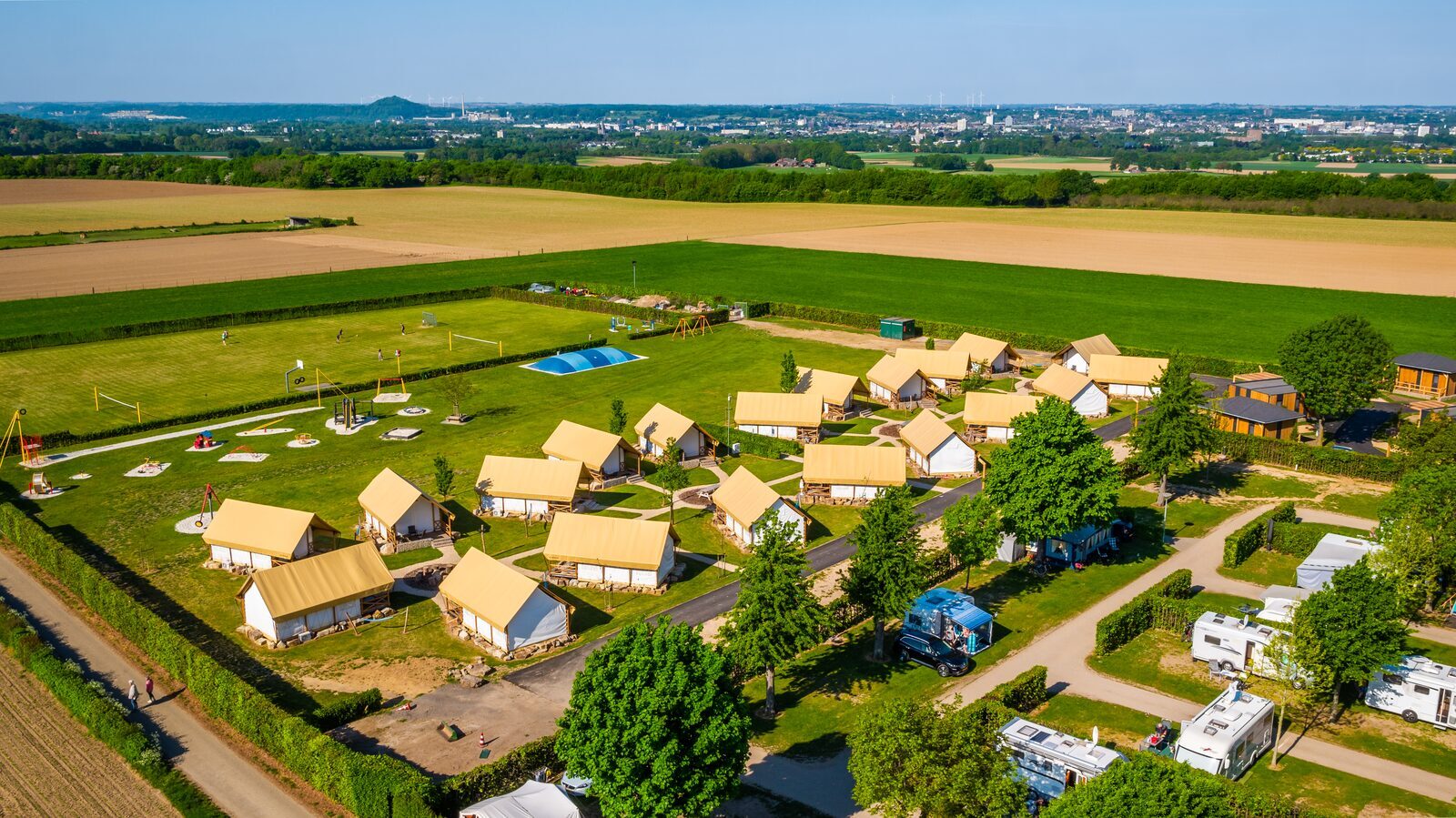 Looking for a campsite in Berg en Terblijt, in the middle of the hilly Limburg countryside? At EuroParcs Poort van Maastricht, you'll camp in a unique location between Maastricht and the Bemelerberg. The spacious pitches are suitable for tents, caravans and motor homes and come with comforts such as electricity and water connections. This holiday park in Berg en Terblijt offers facilities such as an outdoor swimming pool, playground and catering facilities. Discover the Burgundian South, hike over the Bemelerberg or visit bustling Maastricht - from our campsite in Berg en Terblijt, Limburg you will enjoy a versatile holiday with a South Limburg touch.